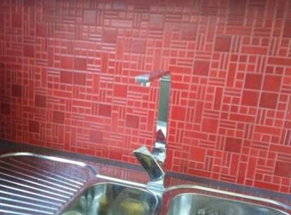 An installation of our 'Mottled Red Mixed Size' (MIX0408) in a domestic kitchen. This is an excellent choice for colour and diversity of size.
